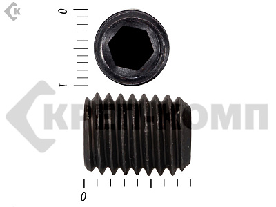 Винт DIN 913 установочный с внутренним шестигранником и плоским концом. Конец установочного винта имеет специальную форму, служащую для фиксации изделий относительно друг друга. Для передачи крутящего момента винт установочный din 913 имеет внутренний шестигранник. Этот вид ключа позволяет приложить большое усилие к винту, поэтому установка производится максимально прочно и надежно. Винт имеет полную метрическую резьбу и по своим характеристикам является аналогом стандартов ISO 4026 и ГОСТ 11074.