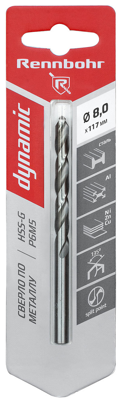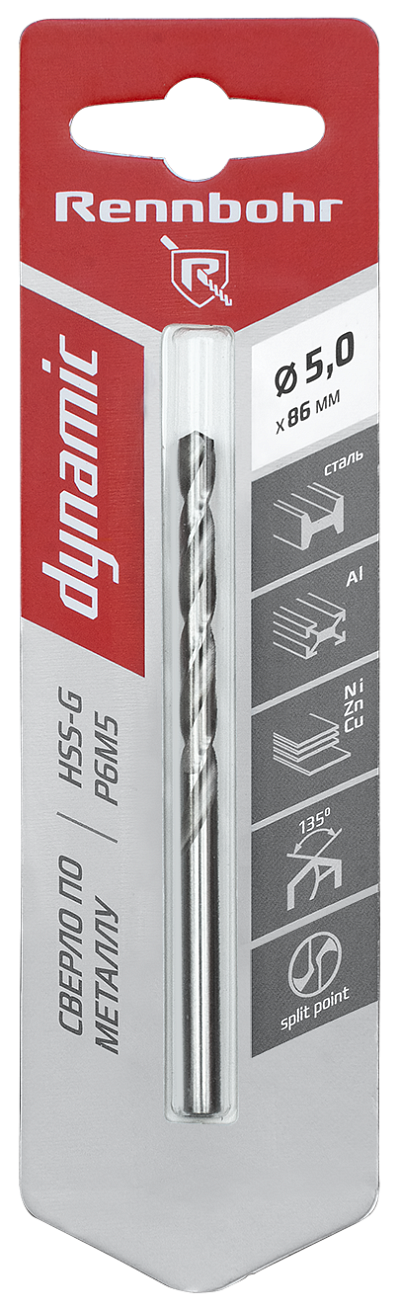 Сверло по металлу 5,0 х 86 мм HSS-G, P6M5 RENNBOHR DYNAMIC CARD ЦХ (1шт)102.95 ₽Цена (с НДС) / 102.95 ₽ за шт.