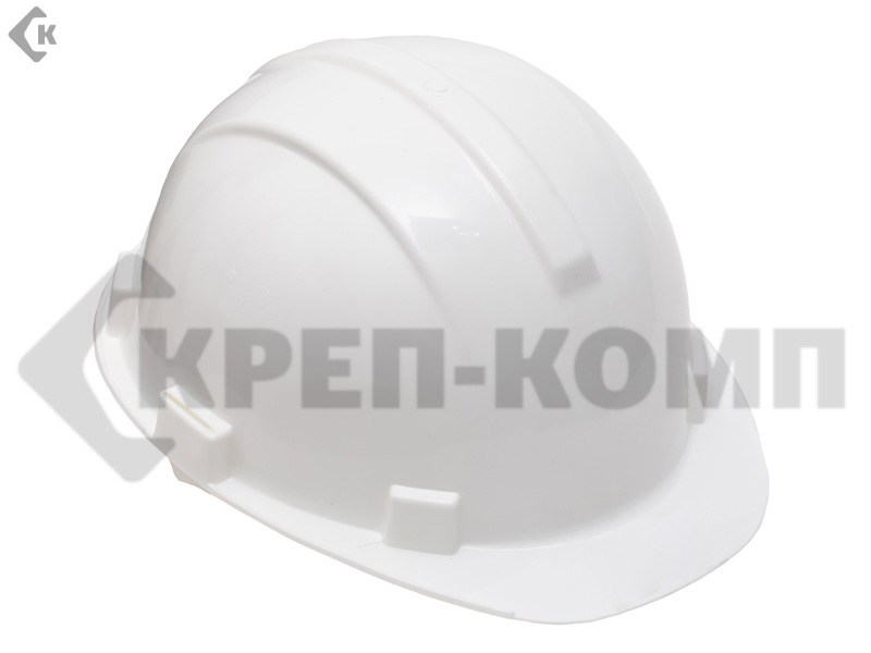 Каска защитная выполнена из ударопрочной пластмассы, цвет белый.